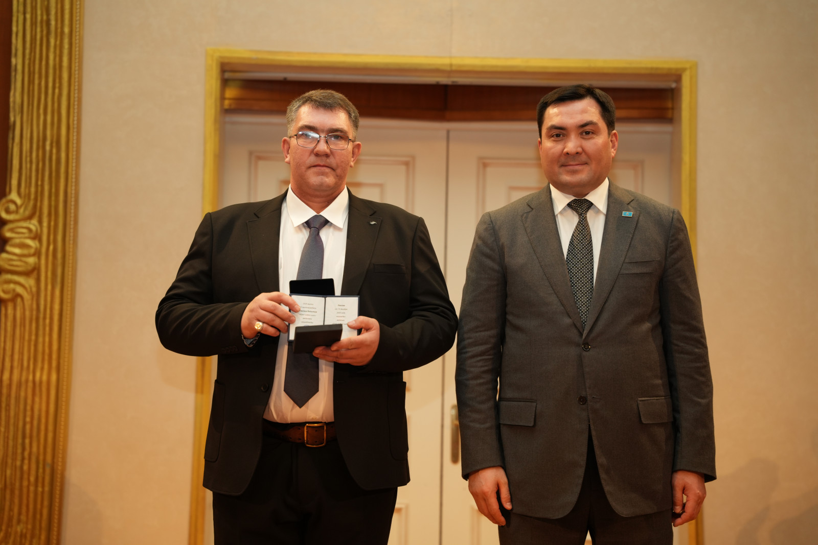 Министр энергетики Республики Казахстан Ерлан Аккенжанов наградил медалью «Ерен еңбегі үшін» старшего машиниста котельного оборудования котельного цеха Петропавловской ТЭЦ-2 АО «СЕВКАЗЭНЕРГО» Сергею Овсейчику.